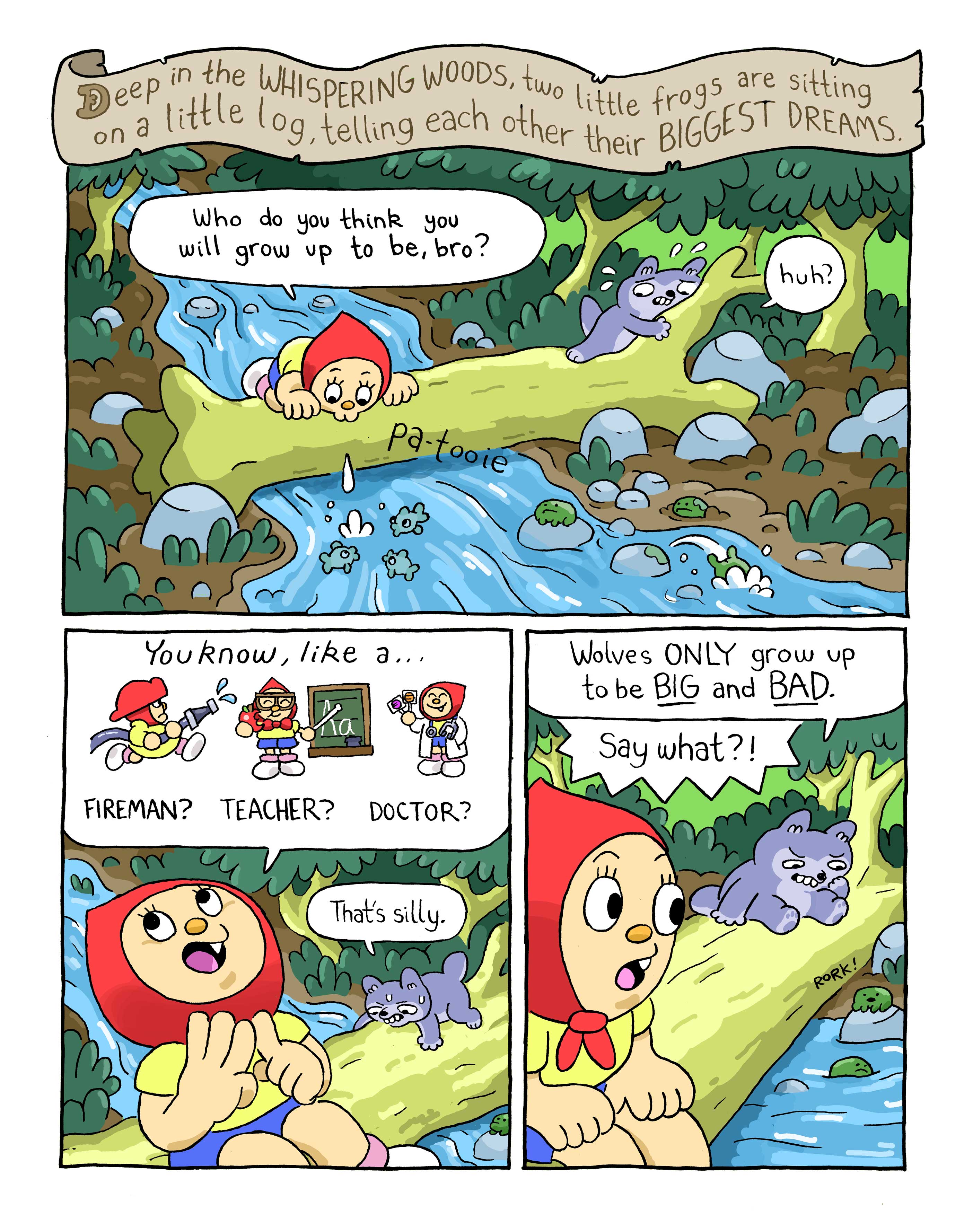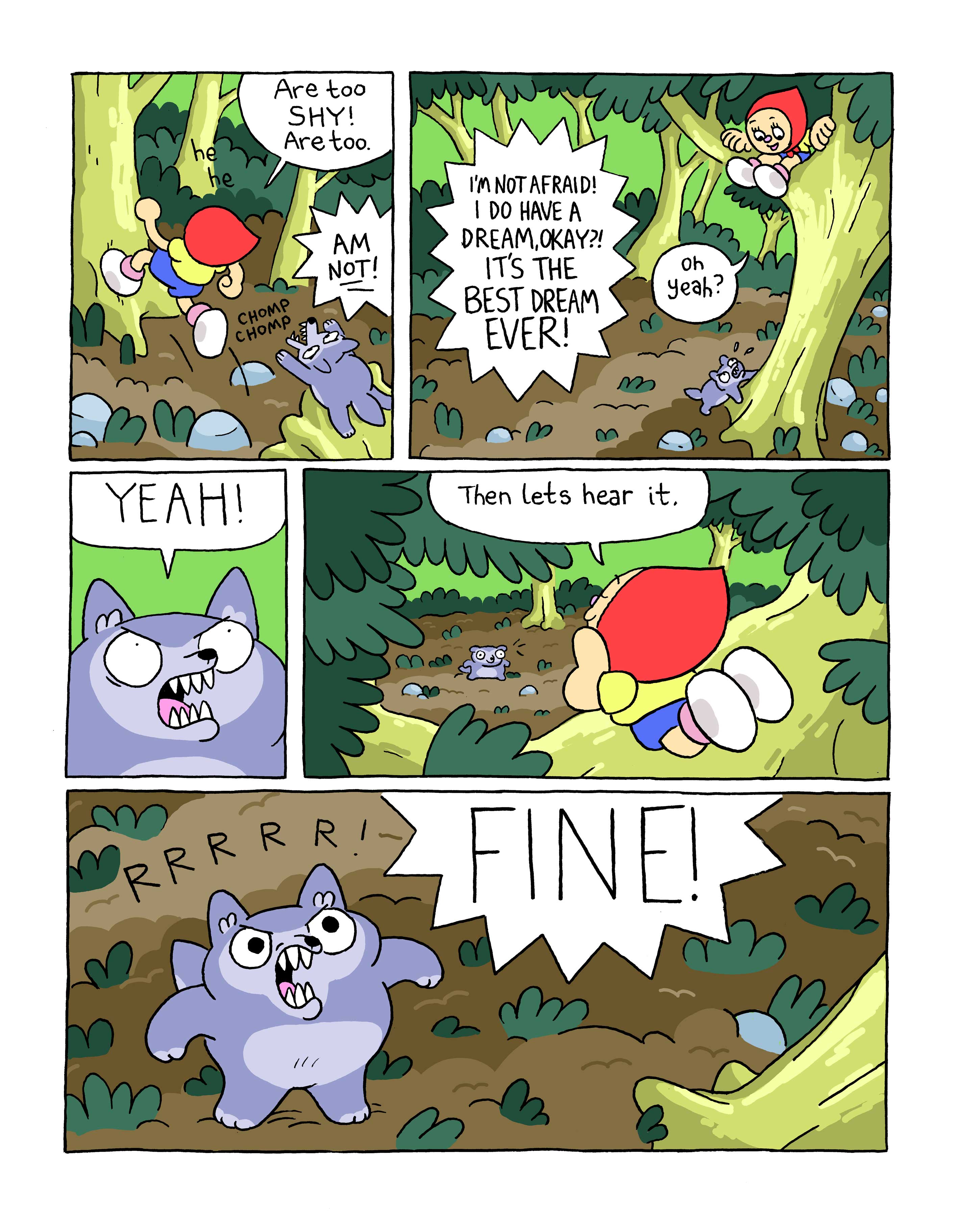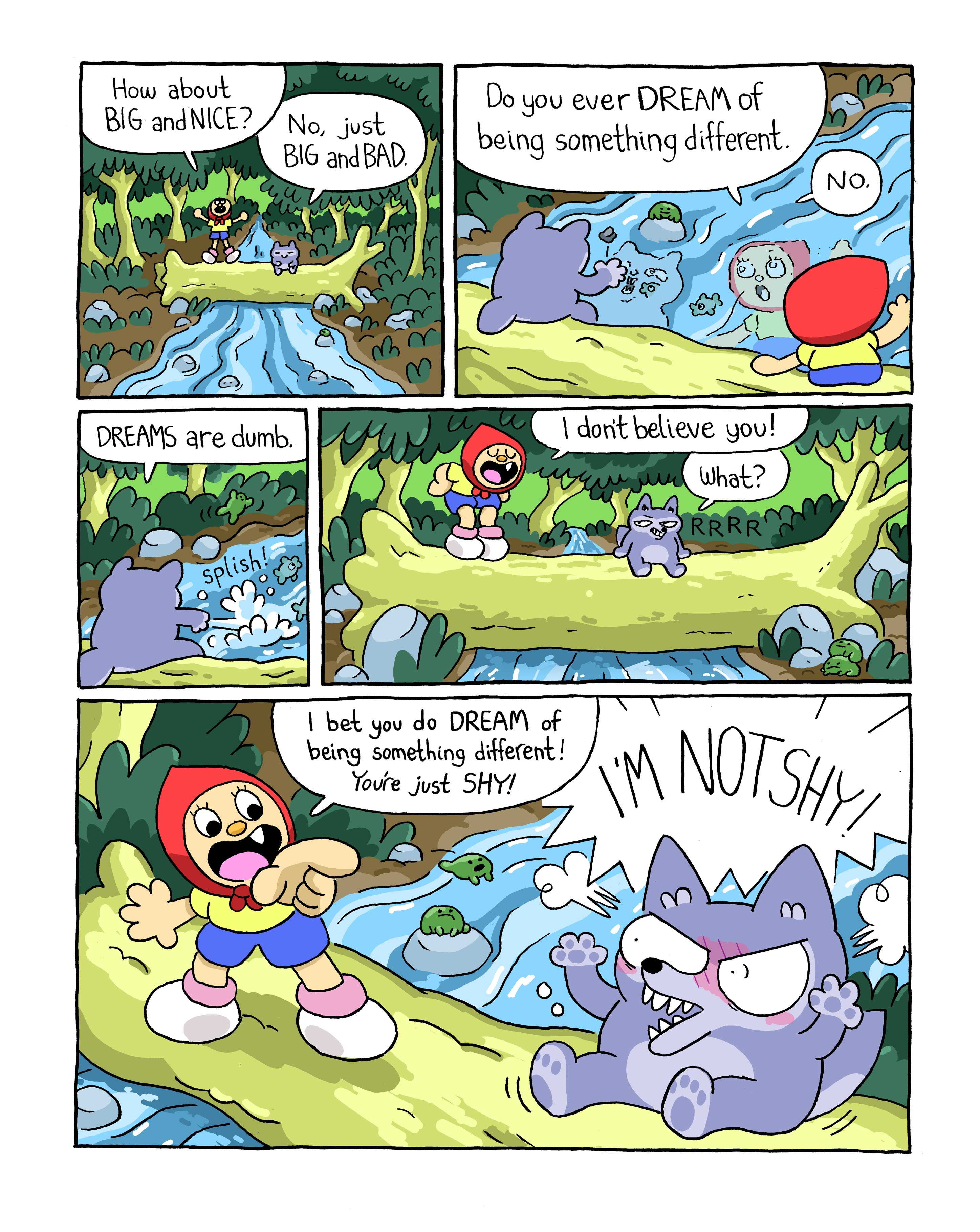Sample pages from a comic pitch I'm working real hard on. Big Red and the Little Odd Wolf. It's about two weird kids who become best buds.